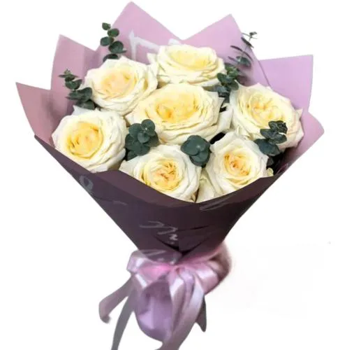 • Средний - кустовая роза - 9 шт ,упаковка,лента