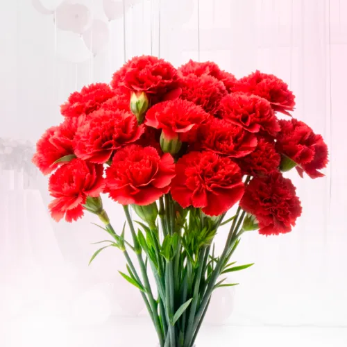 Гвоздика славится своей невероятной выносливостью — букет может простоять в вазе несколько недель, сохраняя первозданную свежесть лепестков. Уход за ней гораздо проще, чем за другими растениями. Перед тем как поставить цветы в воду, достаточно просто обновить срез стеблей под углом. Эти растения стойко переносят транспортировку и устойчивы к климатическим перепадам.