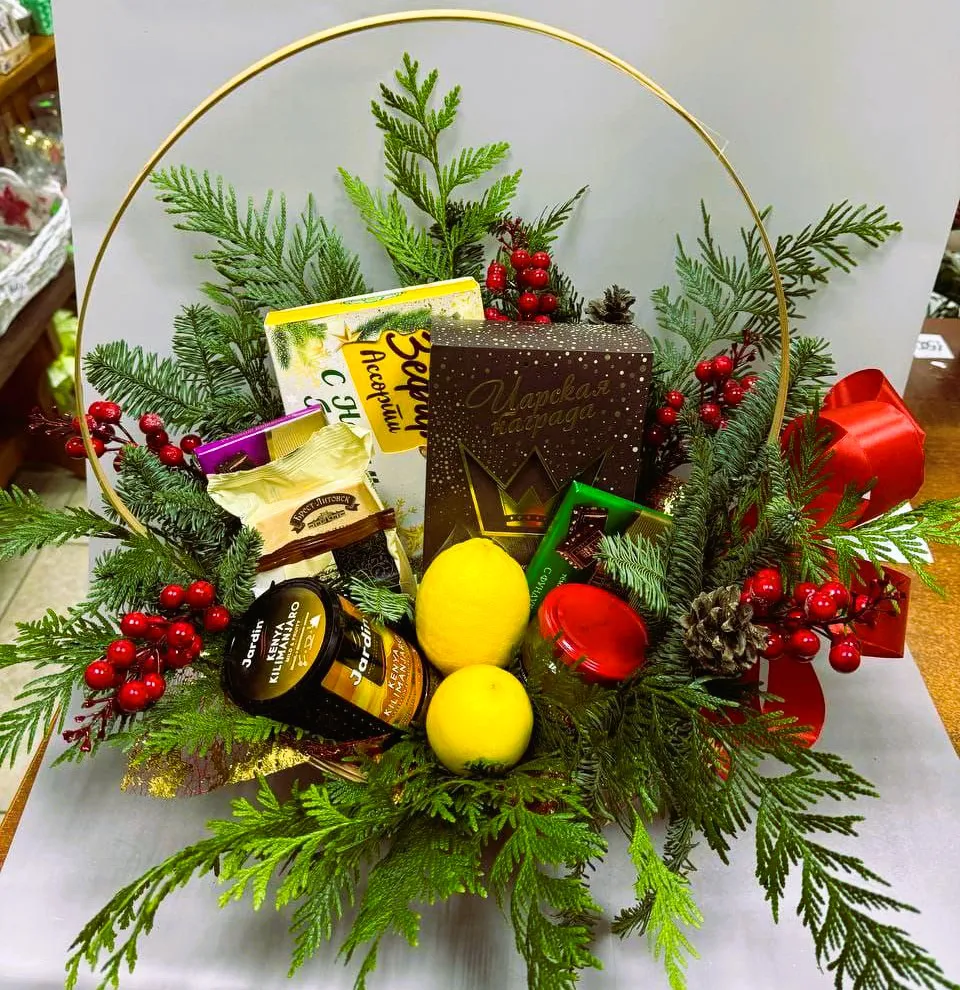 Наша новогодняя корзина — это не только отличный подарок для ваших близких, но и возможность создать уюта и тепла в ваш дом. Такой набор станет прекрасным дополнением к праздничному столу и украсит любое зимнее утро.