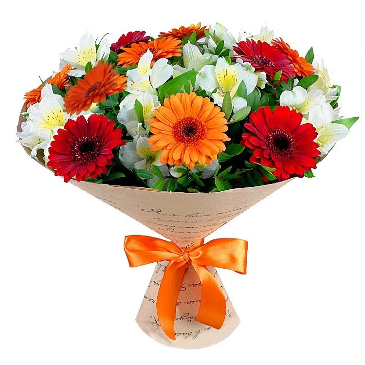 Вариант—Стандарт ( гербера - 5 шт., альстромерия - 4 шт., зелень, упаковка, лента)