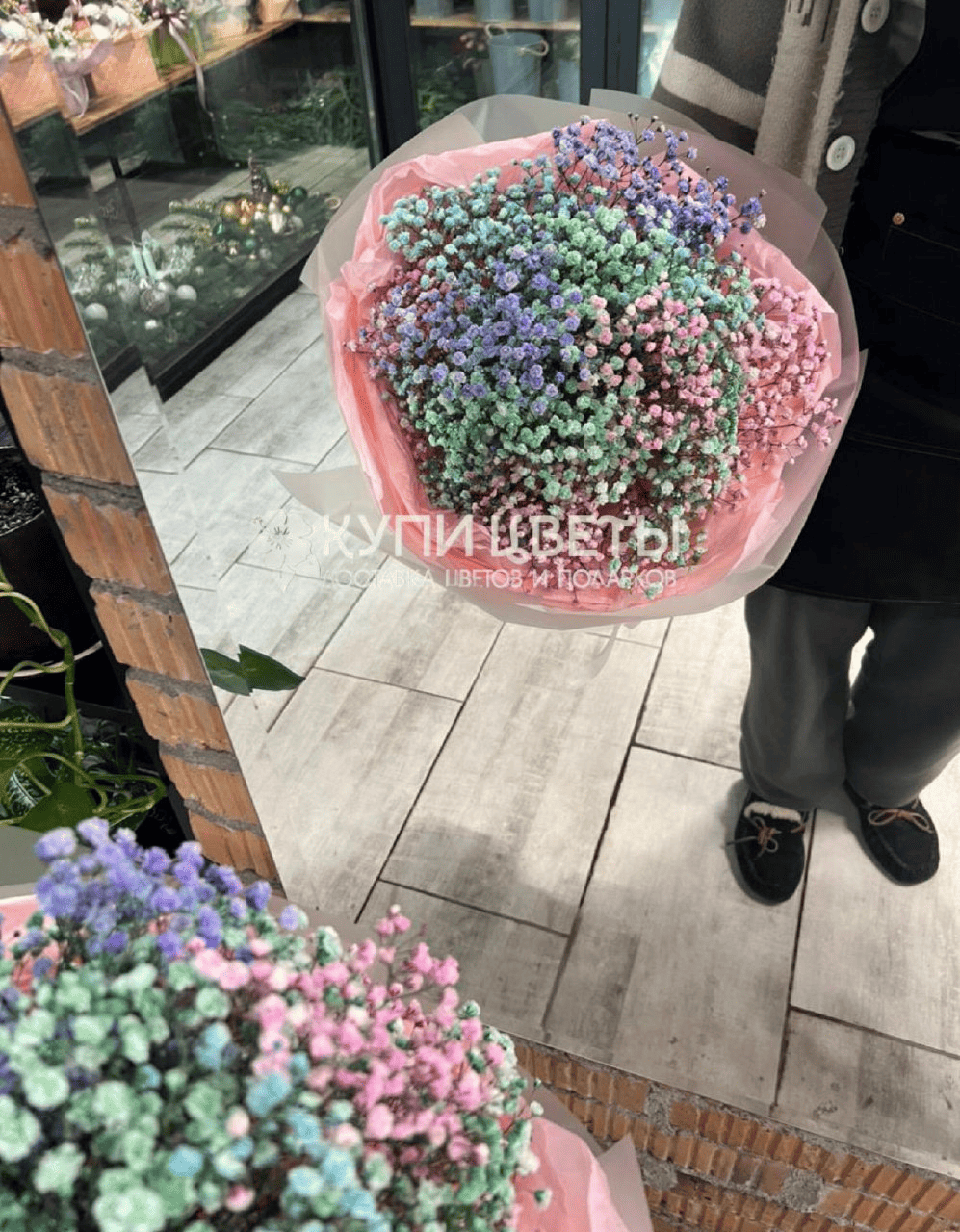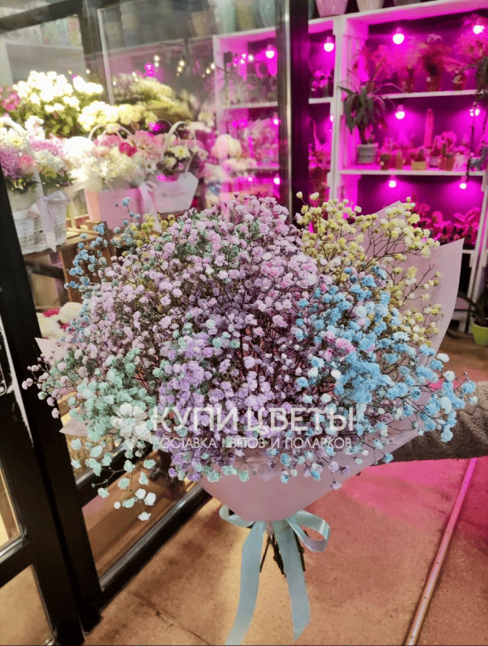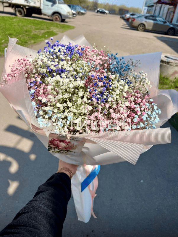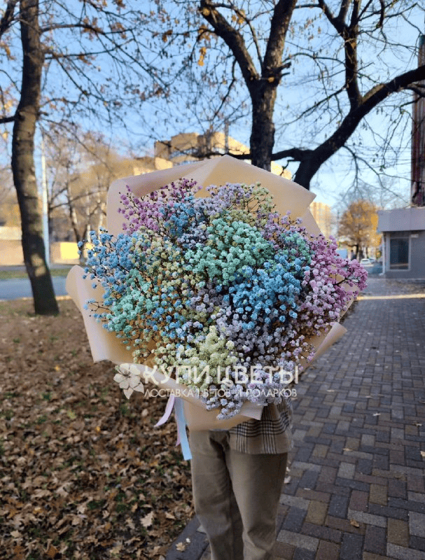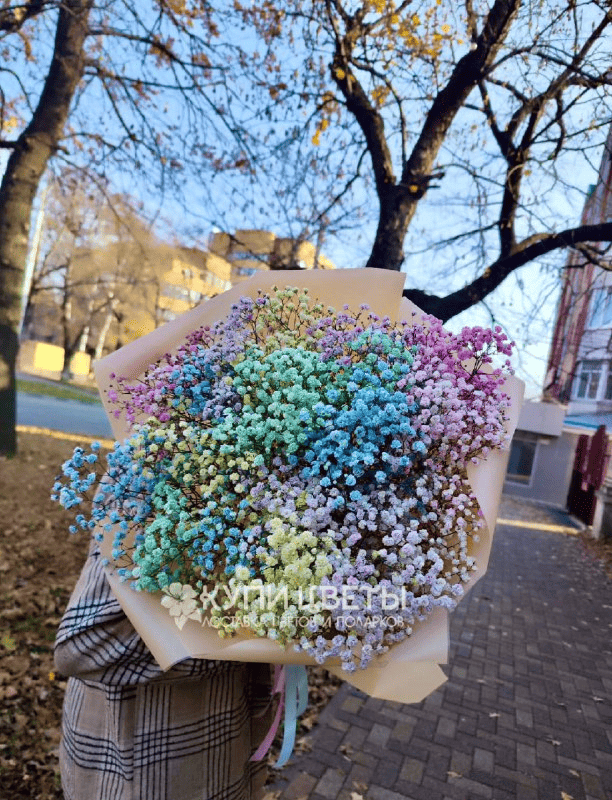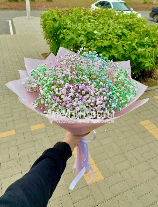 Сделайте день особенным, подарив этот великолепный букет из разноцветных гипсофил .Этот яркий и стильный подарок поднимет настроение вашим близким и любимым.