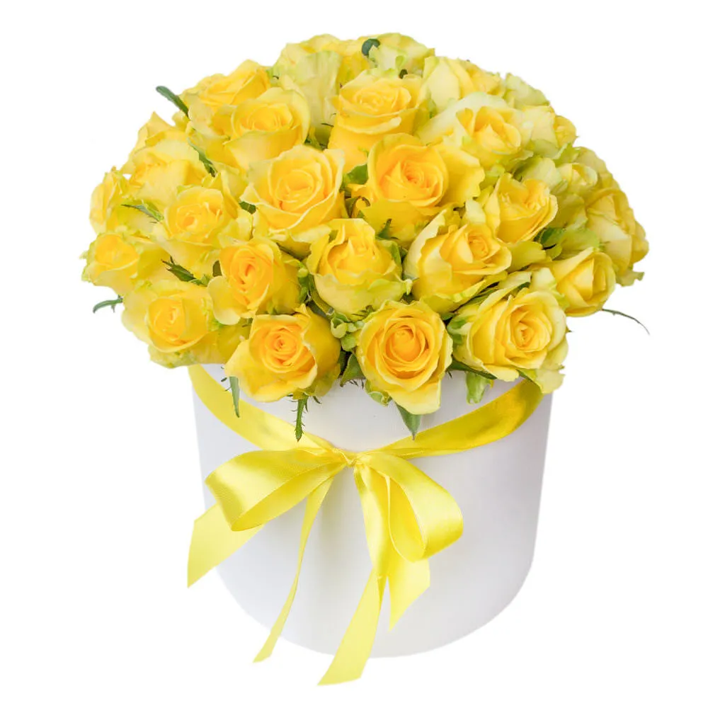 —Букет из желтых роз в шляпной коробке