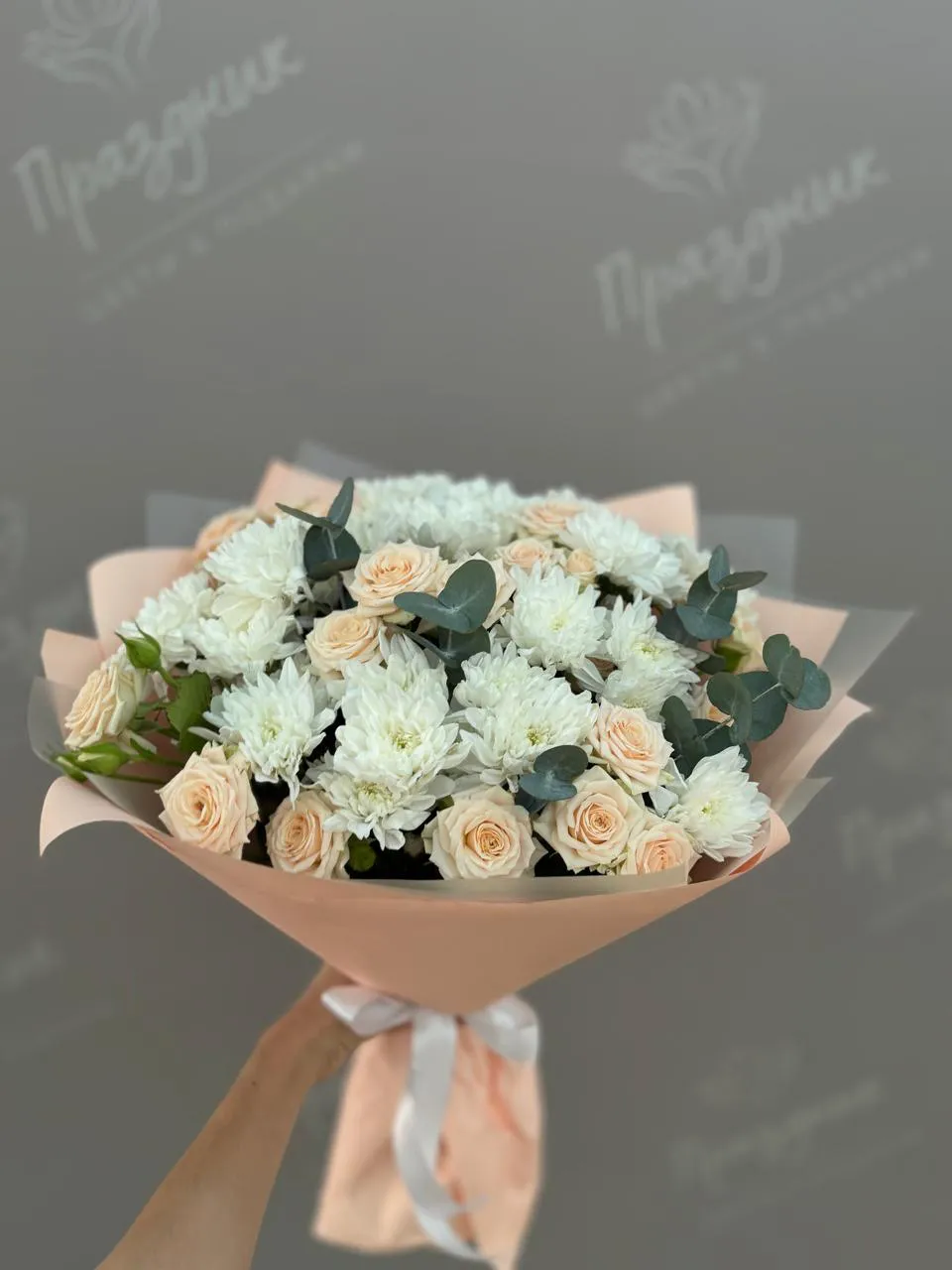 Букет из кустовых роз и хризантем — это прекрасное сочетание, которое приносит в любой интерьер или событие атмосферу радости и уюта. Кустовые розы славятся своей изящностью и нежностью, а хризантемы добавляют яркие акценты и разнообразие текстур. Такой букет станет отличным подарком на любой праздник или просто для поднятия настроения!